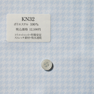 生地番号 KN32 生地番号 価格 色・柄 素材 形態安定 その他 KN32 税込¥12,100 (本体¥11,000) ホワイト×ライトブルー 千鳥格子 ポリエステル100% ○ ストレッチ素材 吸水速乾 ※トリコットニット生地を使用。ご家庭でのお洗濯をおすすめいたします。