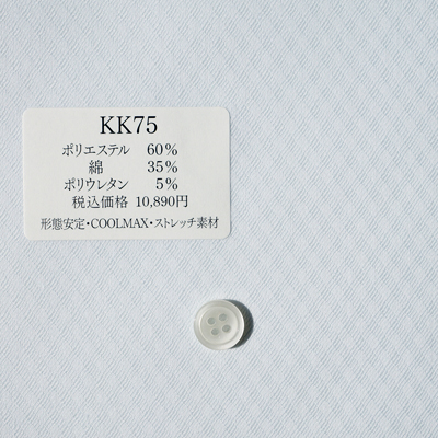 生地番号 KK75 生地番号 価格 色・柄 素材 形態安定 その他 KK75 税込¥10,890 (本体¥9,900) ブルー地 デザイン織柄 ポリエステル 60% 綿 35% ポリウレタン 5% 〇 ストレッチ素材 COOLMAXは汗を吸収・蒸散し、体の快適な湿度をキープしつつ、体温を下げてくれる素材です