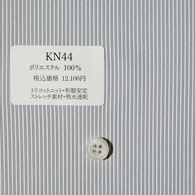 生地番号 KN44 生地番号 価格 色・柄 素材 形態安定 その他 KN44 税込¥12,100 (本体¥11,000) ホワイト×グレー ストライプ 織柄 ポリエステル100% ○ ストレッチ素材 吸水速乾 ※トリコットニット生地を使用。ご家庭でのお洗濯をおすすめいたします。